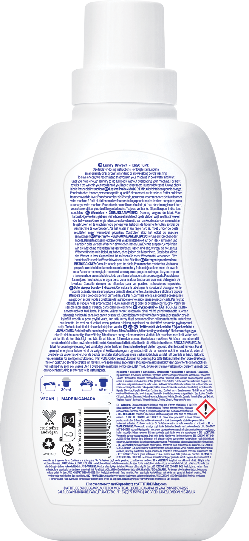 Natuurlijk wil iedereen alleen het beste voor het gezin. Daarom biedt ATTITUDE een wasmiddel dat op natuurlijke en efficiënte wijze hardnekkige vlekken op het wasgoed bestrijdt. Bij de ontwikkeling zijn kankerverwekkende schadelijke stoffen bewust vermeden.