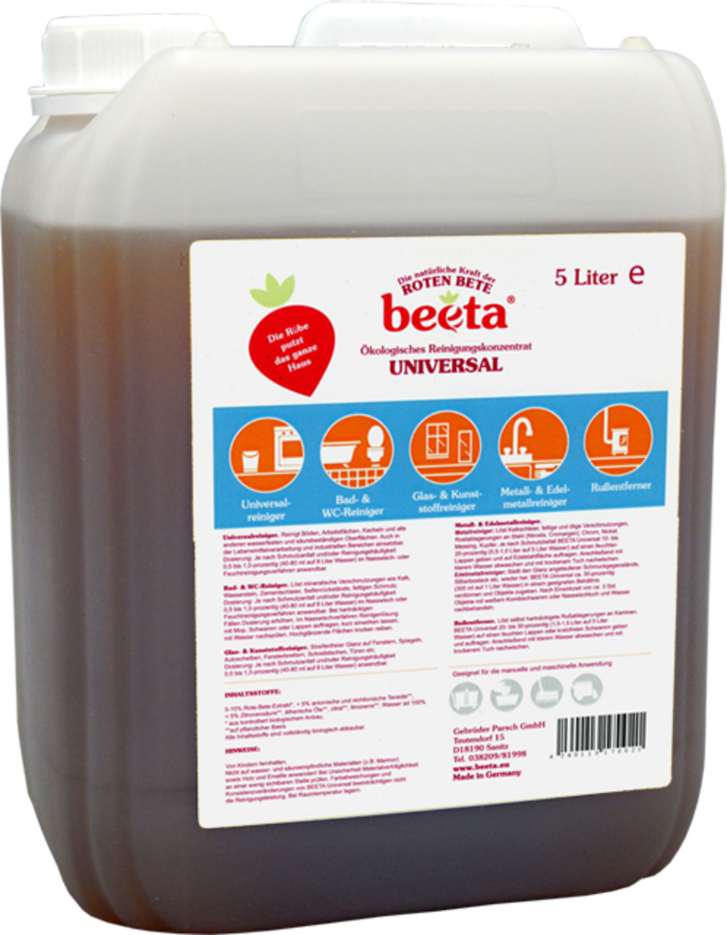 Het universele reinigingsconcentraat van beeta is een echte allrounder. Het combineert 5 krachtige en efficiënte reinigers in één.