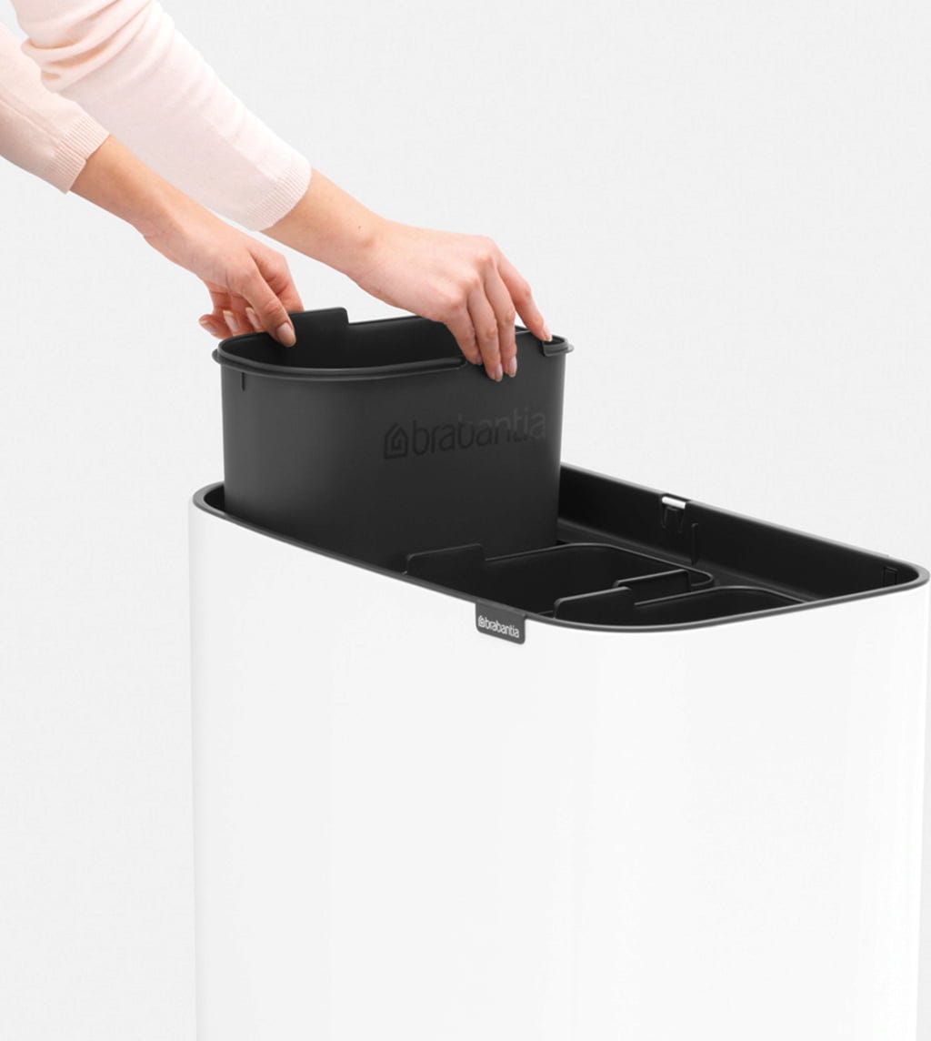 Ben je op zoek naar een mooie oplossing voor je afvalscheiding? Deze Bo Touch Bin combineert een prachtig design met alle functies die je nodig hebt voor het eenvoudig scheiden van afval in huis. Het heeft drie uitneembare plastic inzetstukken voor drie verschillende soorten afval.