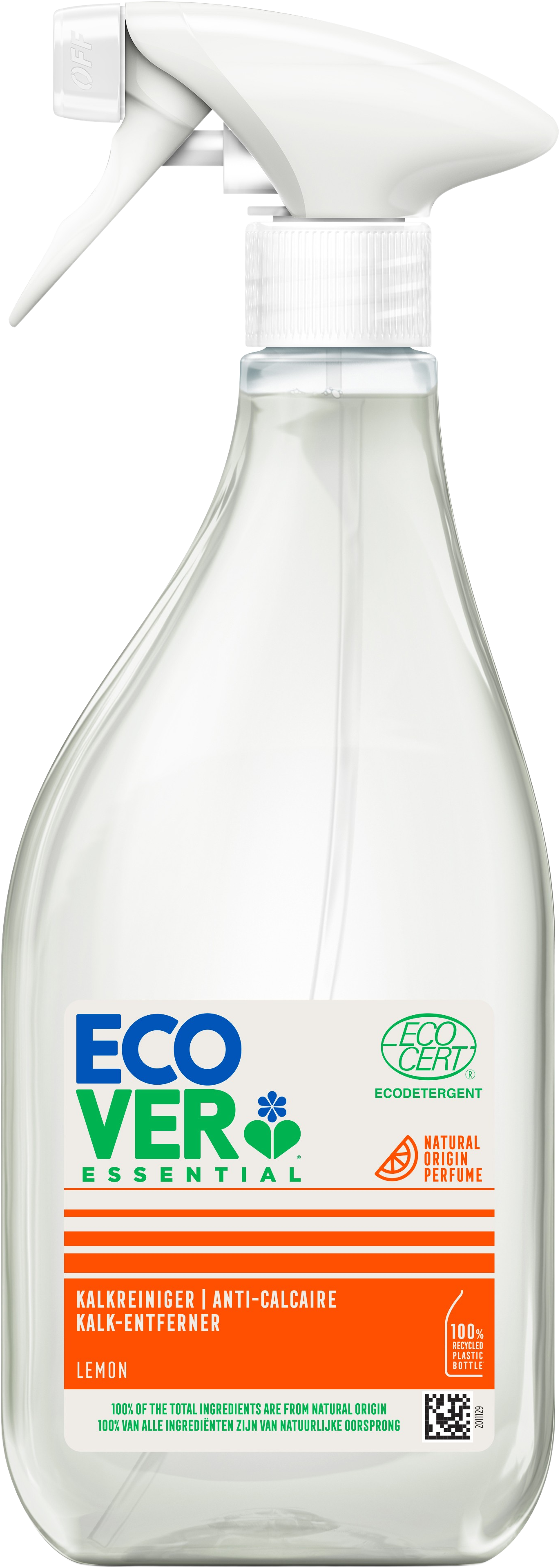 De kalkverwijderaar uit de Essential productlijn van Ecover verwijdert kalkaanslag op basis van plantaardige en minerale ingrediënten. 100% van de totale ingrediënten zijn van natuurlijke oorsprong.