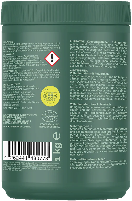 PUREWAVE Reinigingspoeder voor Koffiemachines, 1 kg